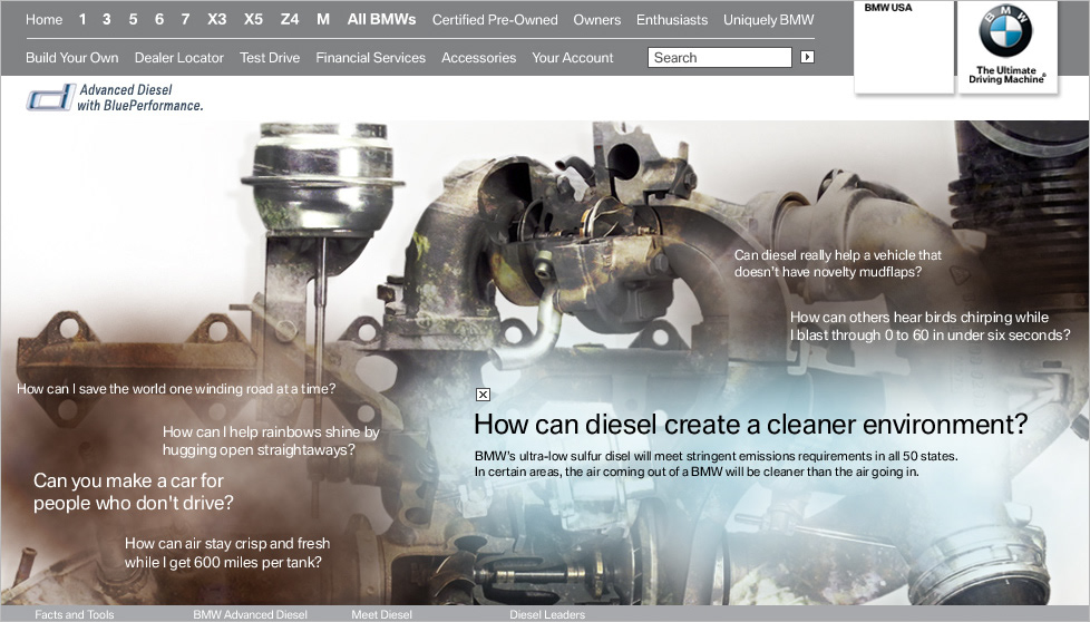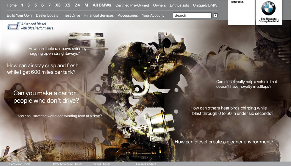 As an Associate Creative Director at Kirshenbaum Bond Senecal + Partners, my team worked on creating the concept and design for the launch of BMW's diesel cars.